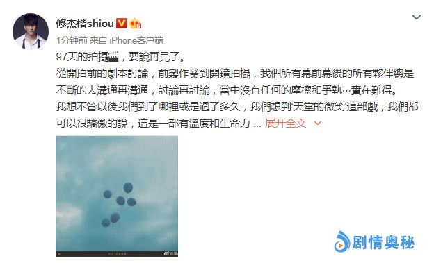 5月14日晚,贾静雯老公修杰楷在V博上PO出最新动态,向大家透露到自己的新戏《天堂的微笑》在经历了97天的拍摄后终于要迎来了杀青,兴奋之余也是不忘致谢与自己有合作的所有台前幕后的伙伴,一个小举动可以说是很用心了。