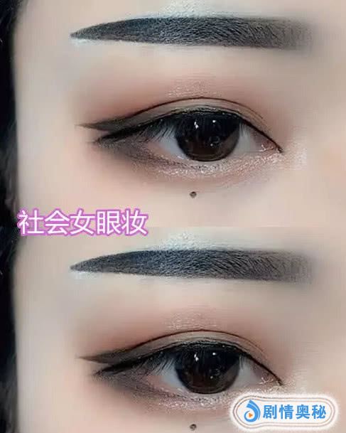 第3个就是社会眼妆了,因为我们都知道现在女孩子。不是喜欢把自己变成一副这样的样子,看上去也是非常有安全感,所以当我们看到这个眼妆的时候也就明白了,其实它的操作非常的简单,只不过看上去比较凶狠一些。