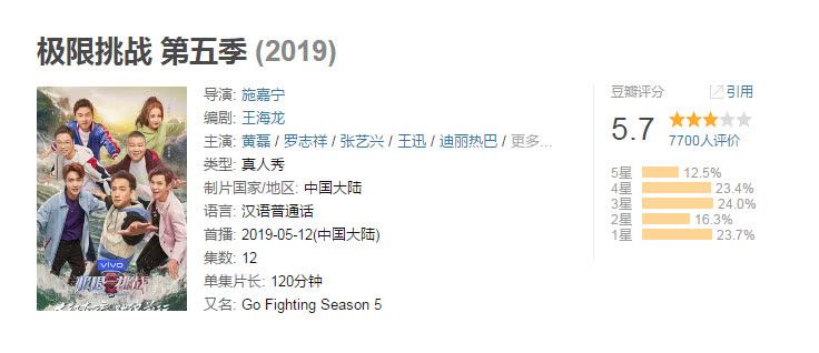 随着节目播出之后,该节目的口碑也都出来了。目前,该节目在豆瓣上的评分是5.7分,相对于第一季的9.1分肯定是不能比,即使和分数最低的第四季的7.6分,也有很明显的差距。造成口碑下降的原因,主要有三个方面,其一是因为换了嘉宾,其二是因为换了导演,第三就是节目内容问题。、