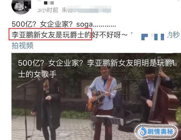 但很快有知情网友发文替李亚鹏新女友辟谣称“李亚鹏新女友是玩爵士的好不好呀?”还放出了该女子在街头唱歌的视频。PS:越看越像王菲。