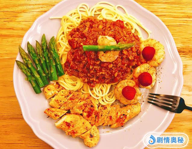 张馨予把配料也且得很细致,锅里的菜五颜六色,给人的整体感觉还不错。当晒出成品照的时候,大家都意外了。下图便是张馨予做好的面,是不是很高级的样子,在外面怕是500也吃不到吧。面上浇了很多酱料,还有蔬菜,肌肉,甜品,水果。最关键的是摆拍,很像高级餐厅的摆拍方式。