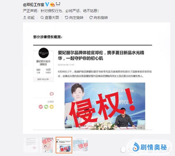关于明星的肖像权、姓名权之类的事件也是时有发生,之前“张亮麻辣烫”一事大家应该也是有印象的,最后张亮也是走上了维权之路。而这一次是某化妆品牌,借邓伦的名义进行虚假宣传,误导消费者,危害了邓伦的合法权益。可见该品牌在宣传文案中,不仅使用了邓伦的照片还用了他的姓名,不过这一品牌很快被邓伦工作室否认。