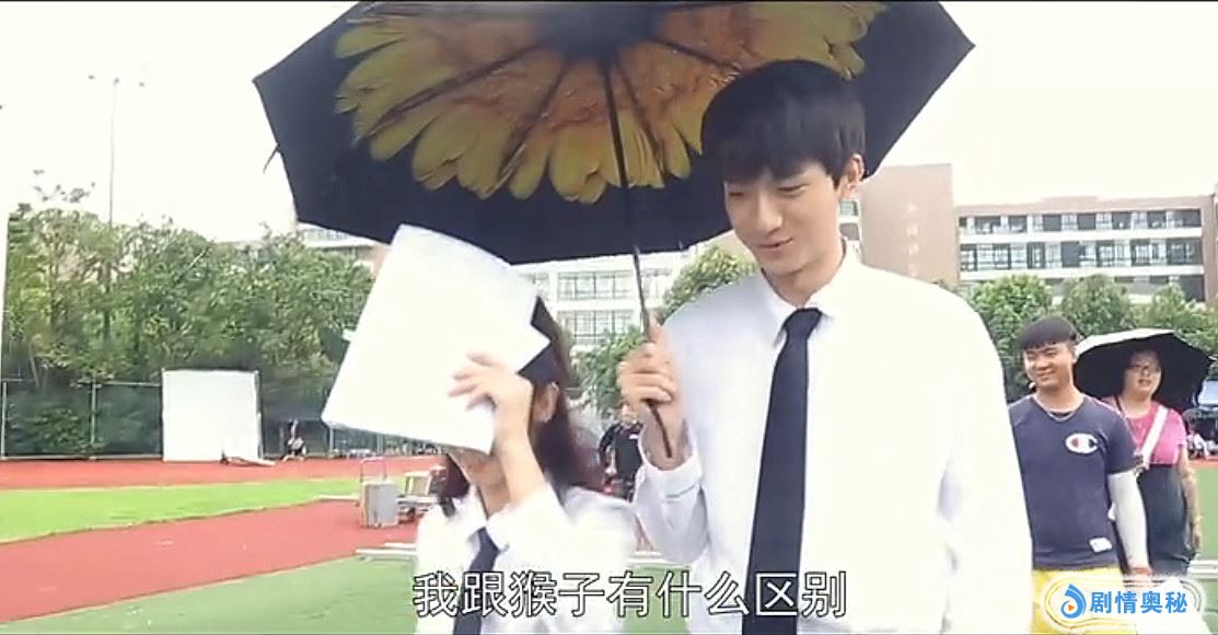 在他们拍“球门吻”的时候,两人都很认真地试戏。谁知道,林一突然对邢菲说土味情话,开口问“我跟猴子有什么区别?”一边用剧本当太阳一边走的邢菲完全没理他,林一只能自己圆场,你知道他说了什么吗?