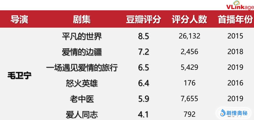 小结:好的作品是整个团队共同努力打造的,当中离不开每一位工作人员的辛苦付出,数据榜单只是从某个角度提供了导演的信息以供参考。同时期待众多优秀导演为观众们带来更多高口碑高知名度的优秀作品。