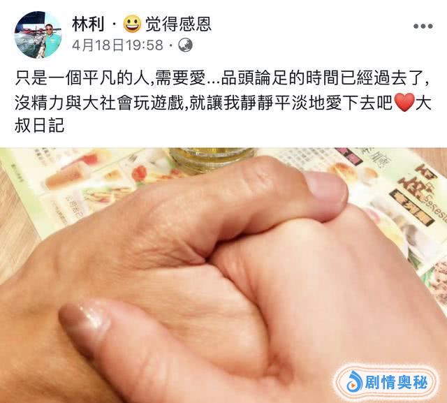 不确定林利与未婚妻是从何时开始拍拖,不过两人其实相识已经很久,以林利的话说就是对方是自己的故友,更是自己的资深粉丝,当年林利在台湾发展的时候,每次出席活动,对方都会坐在前排支持他,后来林利结婚且离开台湾,两人的联系就断了,缘分的牵引让他们在2017年年底2018年年初又重逢,是一见如故,也是情投意合,最终携手走在一起。