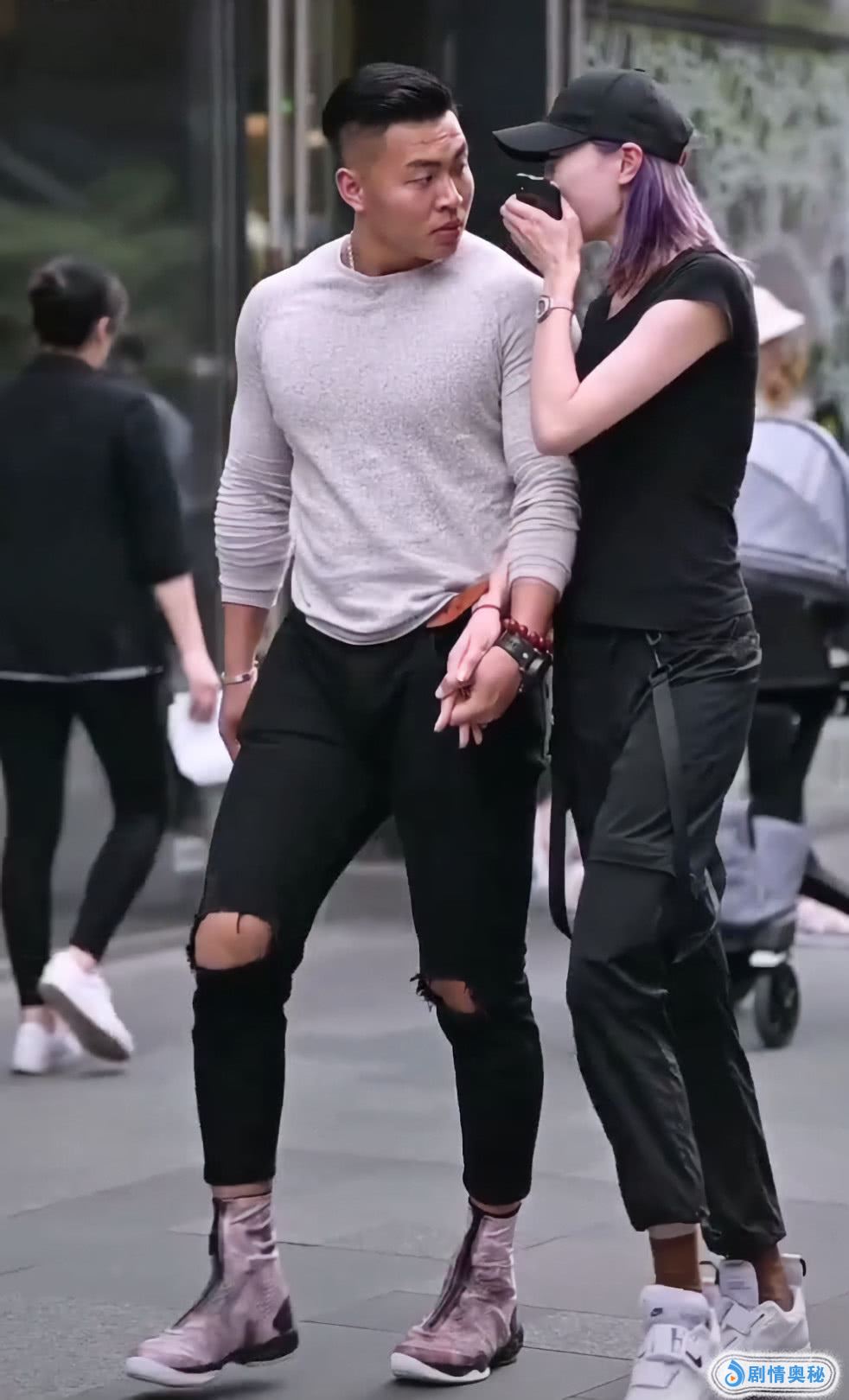 现在大家都只关注一些高颜值的情侣,看上去都是瘦瘦的样子,不过你喜欢关注一些身材很好的男孩子吗?在街上有不少情侣穿的衣服都是比较特别和时髦的,小编这次也是要说一组情侣的街拍,两人的身材都不错,只是这个男孩子一看就是健身过的样子,他穿的衣服都是比较简单的,但是他身材完全把衣服给撑起来了,看着都有点尴尬了,也不知道为什么他要穿这么紧身的衣服,咱也不敢问啊!