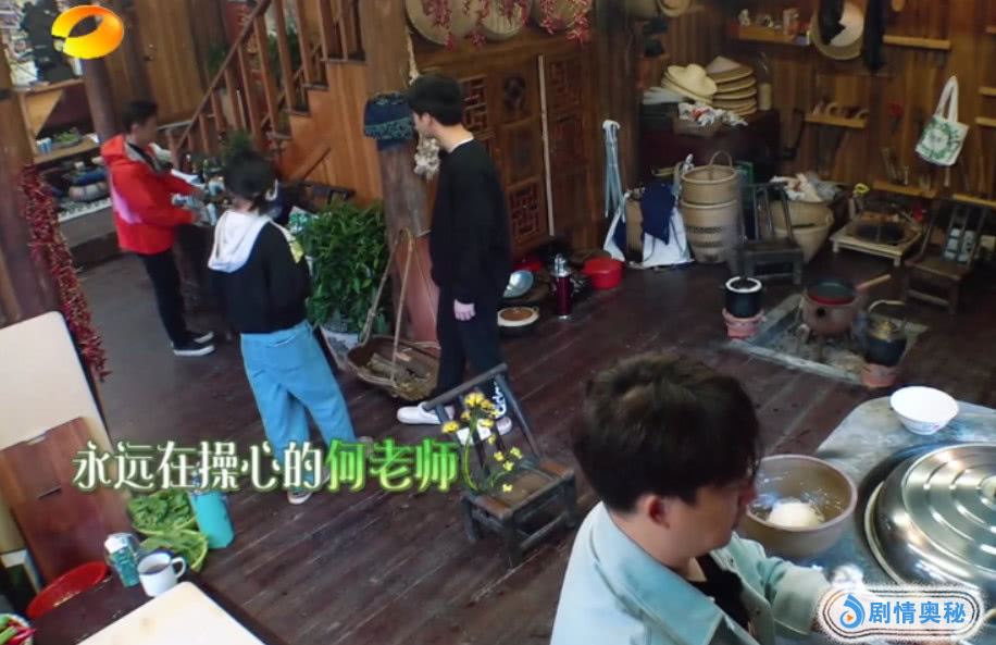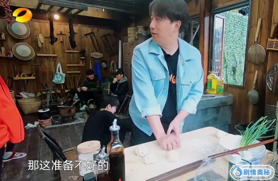 这一期刚开始,曾毅,筷子兄弟等人在回忆童年的广播体操,这个时候我们看到黄老师是刚刚出来的,跟他们聊了一会天的时候,就要去准备早饭,早饭就是做葱油饼,这个时候,彭昱畅跟张子枫来到了厨房,准备生火,就是这个时候,谁注意到厨房中的面盆了!