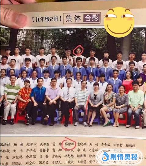 看完了童年早,再来看少年照,这是蔡徐坤中学时期的毕业照,他正处于最后一排的正中央位置,一般站在这个位置的,多数是班里最受欢迎的那个人,所以看得出来蔡徐坤在班里的人缘很好。而且为了突出自己,蔡徐坤两只手还做出了摇滚的姿势,网友表示:很特立独行,一样就看出来是你。