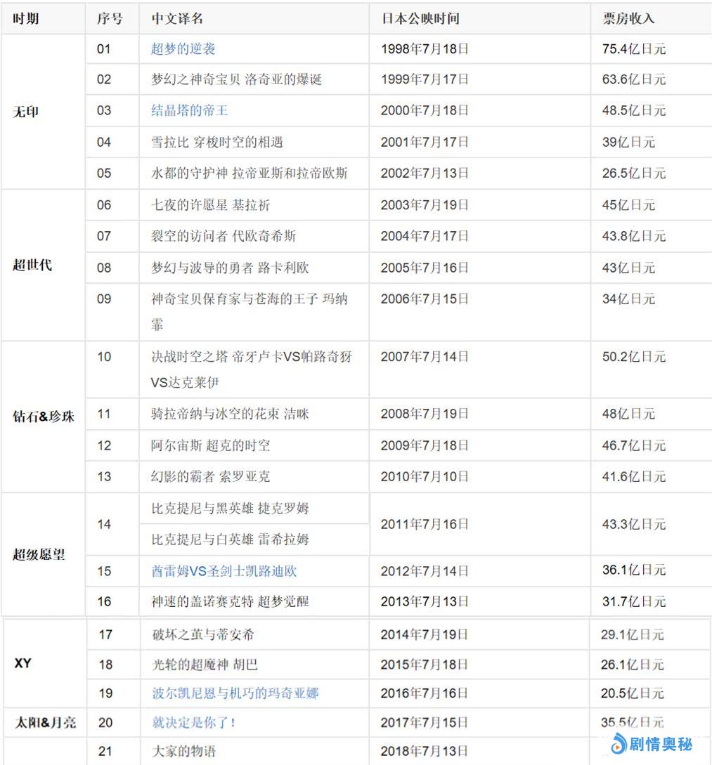 表现之一是票房的不稳定。21部《精灵宝可梦》剧场版动画中,日本国内票房收入最高的作品为1998年上映的首部剧场版动画《精灵宝可梦:超梦的逆袭》,总票房75.4亿日元。到2017年的《精灵宝可梦:就决定是你了》,日本国内票房只有35.5亿日元。