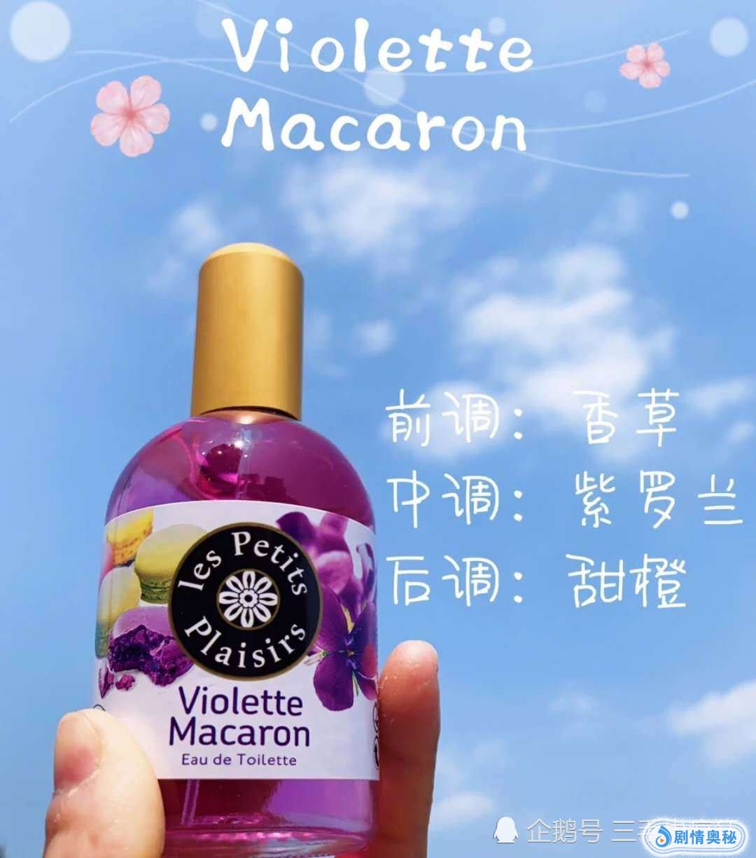 最后一款是violette Macaron紫罗兰马卡龙,前调:香草,中调:紫罗兰,后调:甜橙。这款是甜甜的花果香味,适合约会,喷了很有存在感,紫罗兰花香混着甜甜的香草味,像咬了一口马卡龙一样,满满的幸福感。