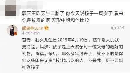 前段时间晒出双胞胎女儿1周岁生日写真的她,当被网友指责是故意拿双胞胎女儿和前男友郭富城较劲时,当时对于被牵扯进来的两个双胞胎女儿可以说是触碰到了熊黛林的底线,为此她也彻底被惹怒发文回怼网友。