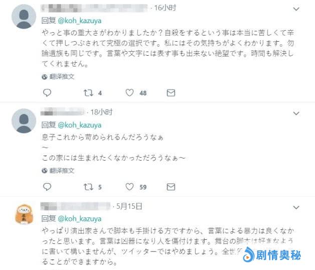 护妻心切的高山和也不忍妻子再受苛责,所以出面回应了相关问题,并表示,网友根据之前的报道评判是有失公允的,具体真相也只有当事人清楚,而自己是了解事情原貌的,所以才会选择和上香多原子结婚。其实为了护妻,说出这些话都还能理解,可后来,竟直接脱口而出到:“自杀父母也有责任。”这句话直指TENN的死跟其父母没教育好他有关。