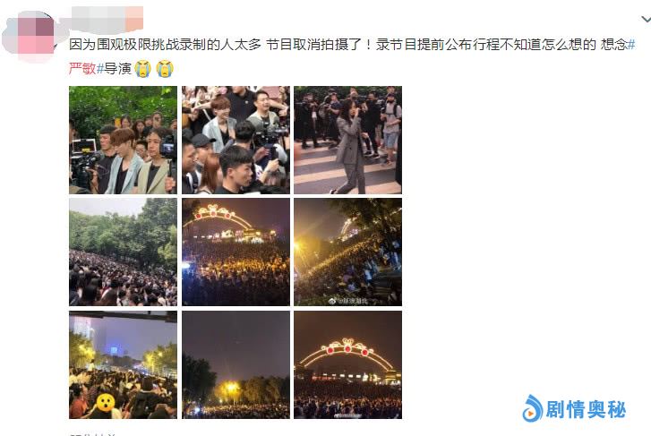 《极限挑战5》录制状况频频,因为围观极限挑战的录制的人太多了,导致节目取消拍摄还给嘉宾带来很多不必要的麻烦。之所以会出现这样状况,是因为节目组录制节目前提前公布了行程。不少鸡条女孩表示“都不知道新导演施嘉宁是怎么想的居然提前公布行程,以前严敏在的时候一定不会出现这样的情况。”还有鸡条女孩都呼吁“严敏快回来吧,救救男人帮”,严敏也因此喜提了热搜。