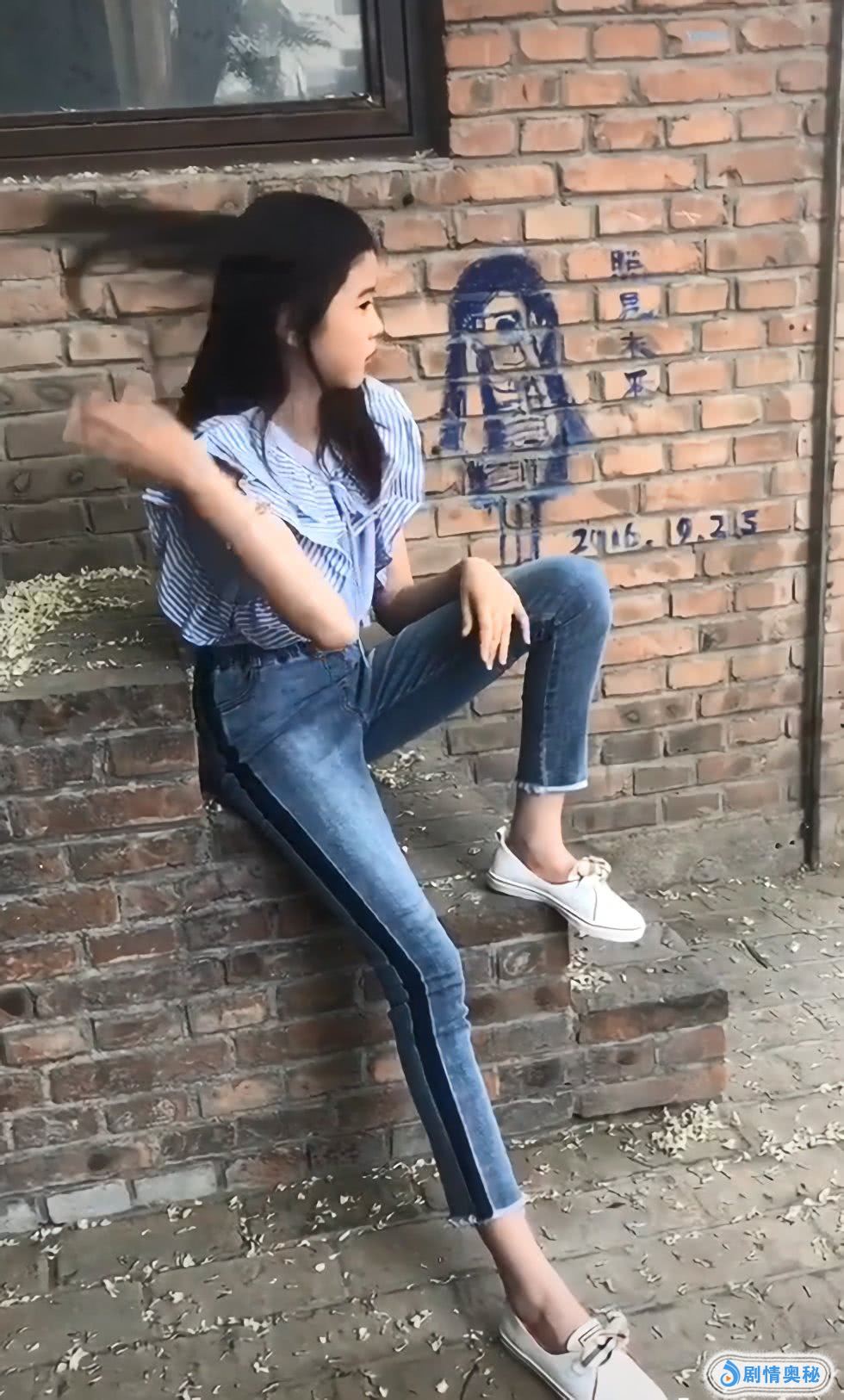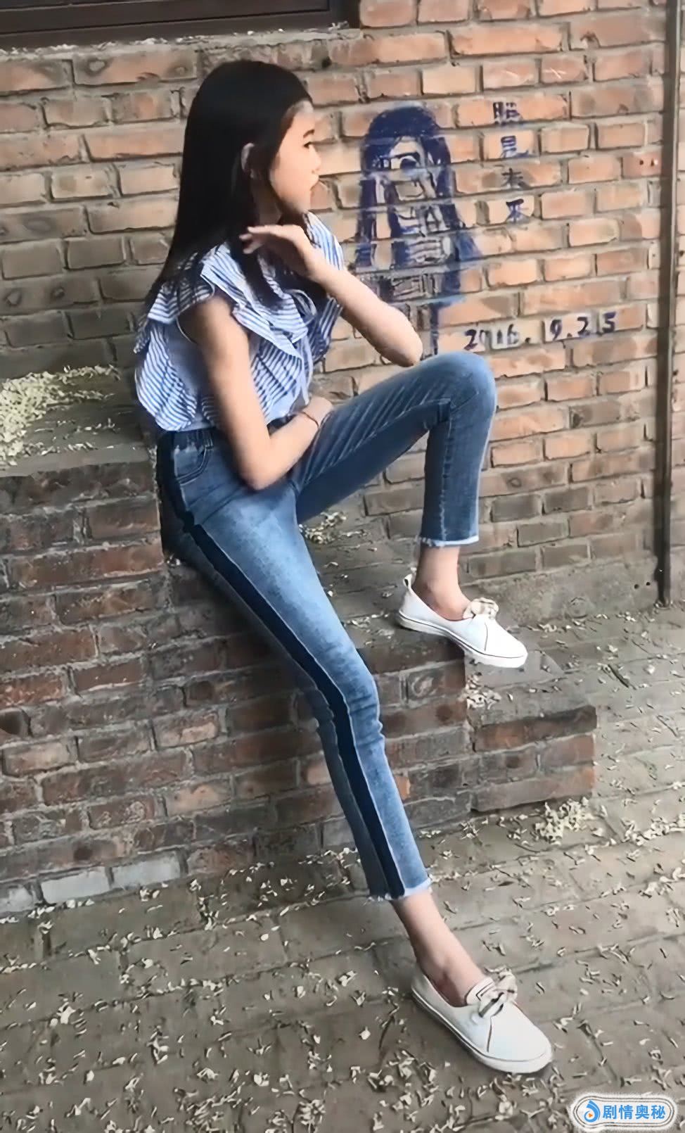 不得不说现在的小朋友发育得太好了,穿的衣服都比较成熟,而且身材长得特别好,也不知道为什么现在的00后腿都非常长,像这个女孩子她的腿就非常长,穿着一件蓝色的上衣,简单又很大方!