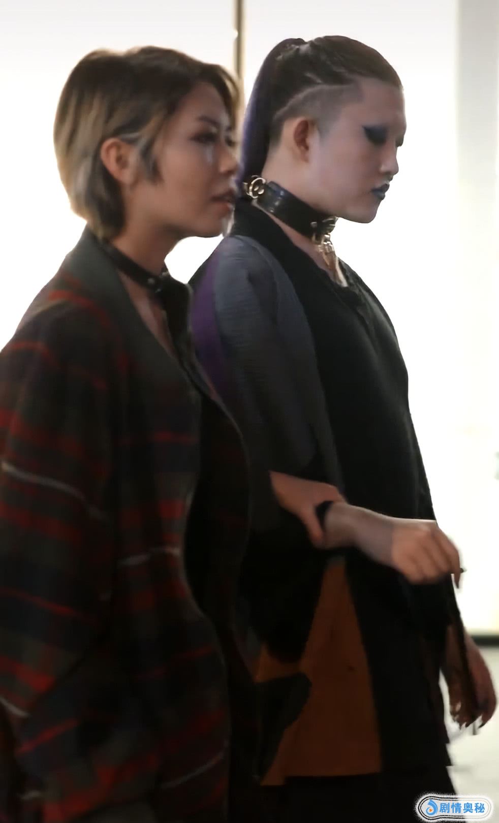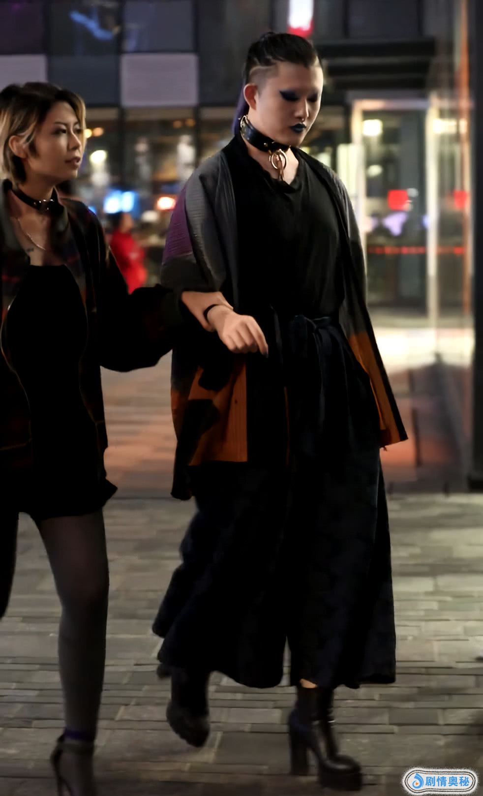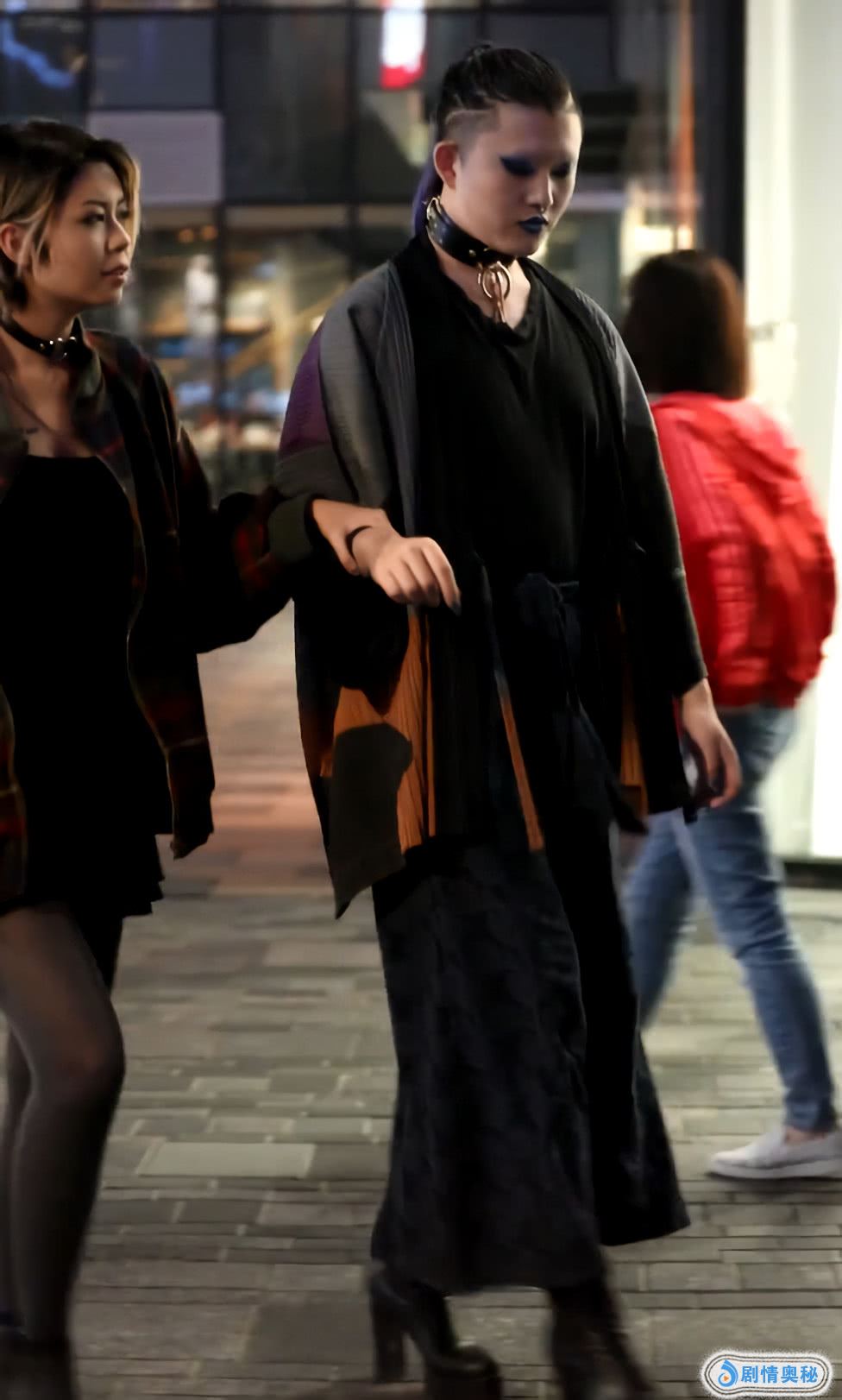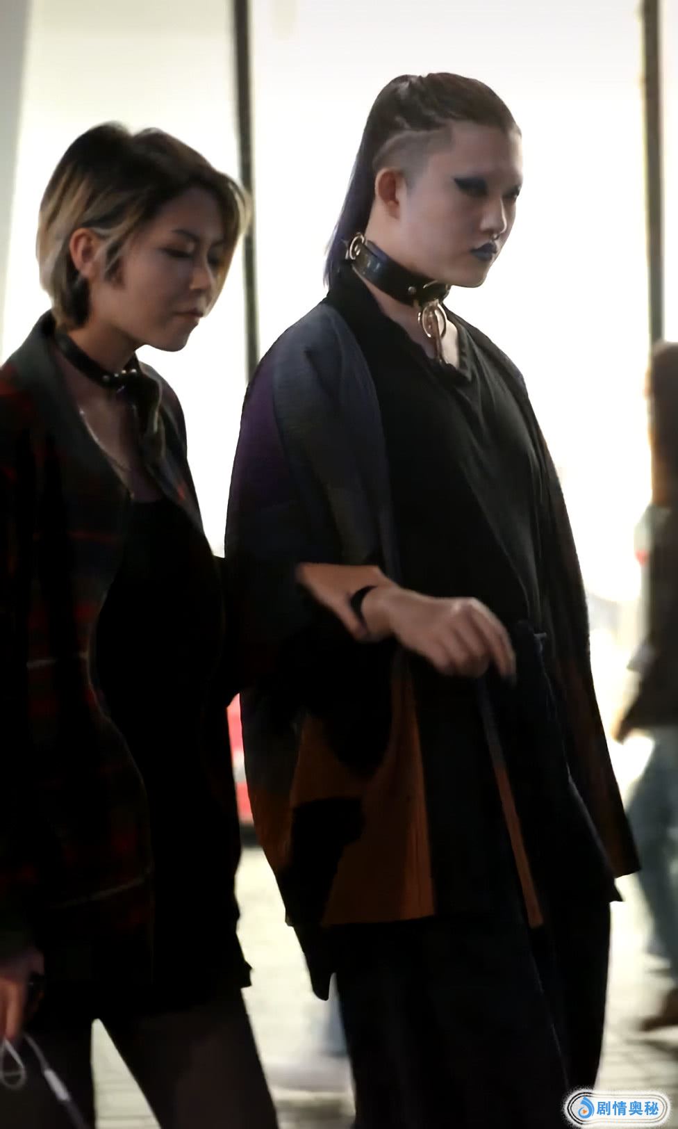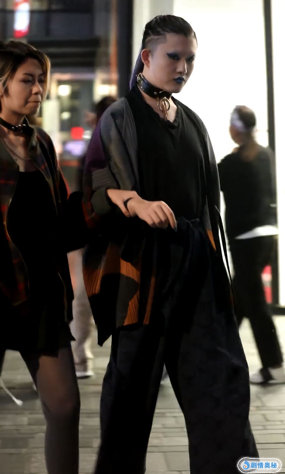 这对情侣的造型真的很吸睛了,只是我不敢正眼看了,毕竟这个男孩子的妆容实在是太霸气了,看上去瞬间就觉得气场十足,他还化着烟熏妆,看上去非常夸张,一般人不敢尝试!