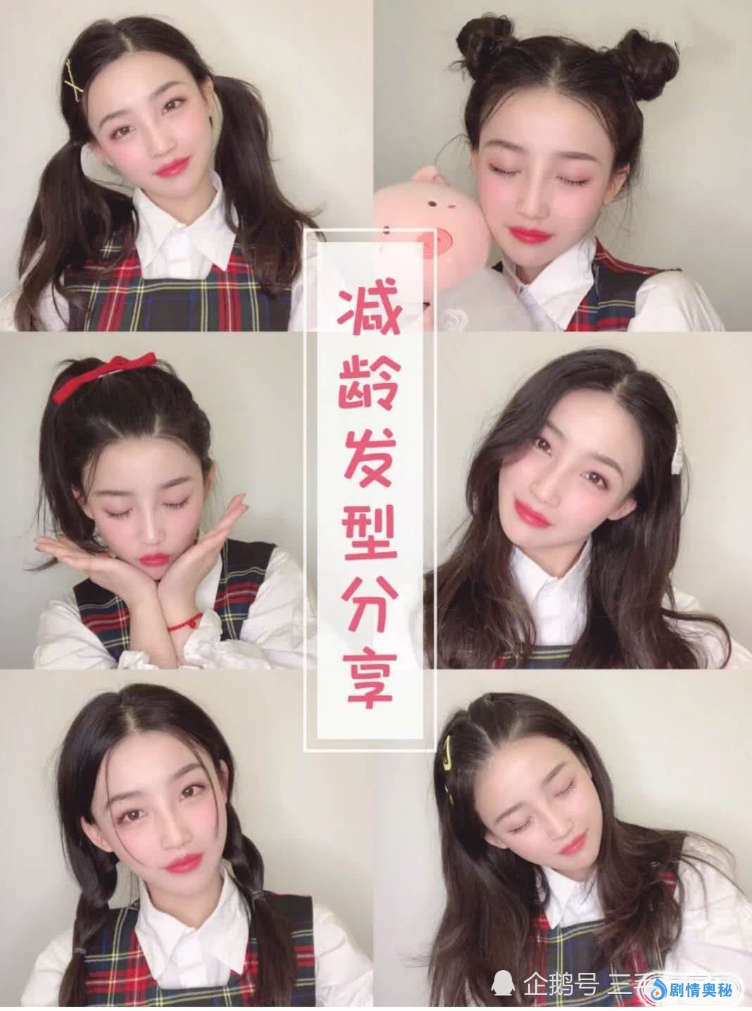 首先第一款减龄发型是双马尾,相信大家对于双马尾都是很熟悉的,毕竟这款发型大家在很小的时候就会扎,但是可能效果不是很好。这款双马尾一定要扎在耳朵上方一点,可爱又俏皮,再搭配可爱的小发卡更加青春无敌。