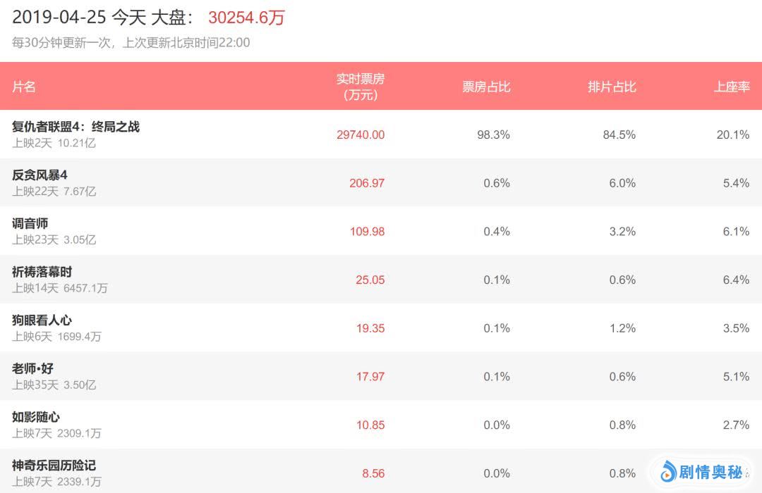 - 《复仇者联盟4》票房破10亿,赶上《惊奇队长》只用了2天!