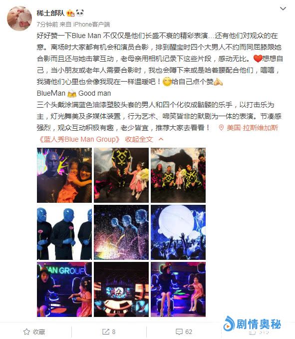 - 最温暖的乐队:章子怡发文点赞BlueMan