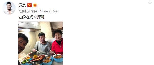 - 吴京获爸妈带饭菜到剧组探班,晒与父母合照,脸上疤痕惹人关注!