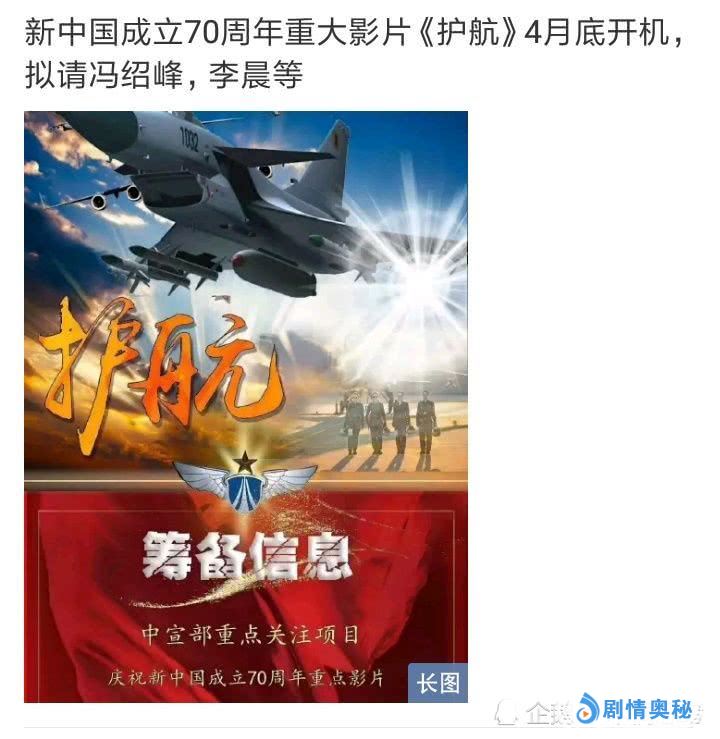 - 中宣部重点关注影片《护航》筹备开拍,拟请冯绍峰合作李晨出演