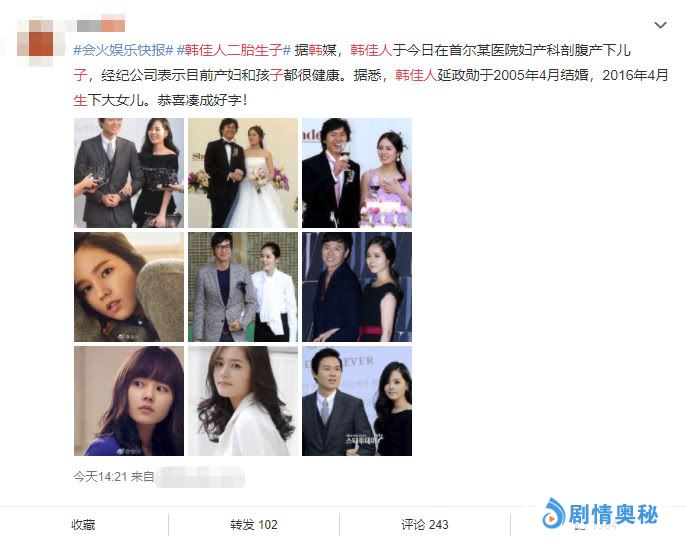 - 37岁女神韩佳人二胎生子凑成“好”字,一家四口超幸福