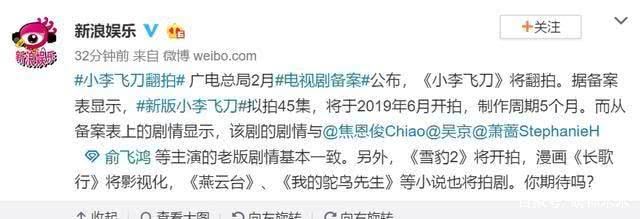 - 影版凤唳九天将来袭,女主还是爱情公寓里的她?网友:超期待!