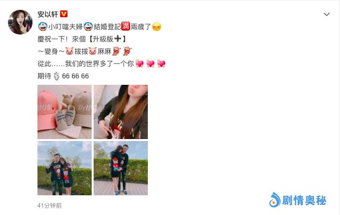 - 恭喜!结婚两周年安以轩微博宣布怀孕:从此我们的世界多了一个你