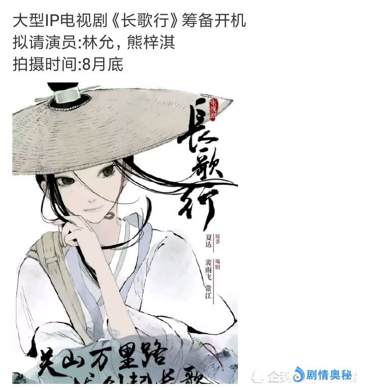 - 大型IP电视剧《长歌行》筹备开拍,拟请林允合作熊梓淇出演