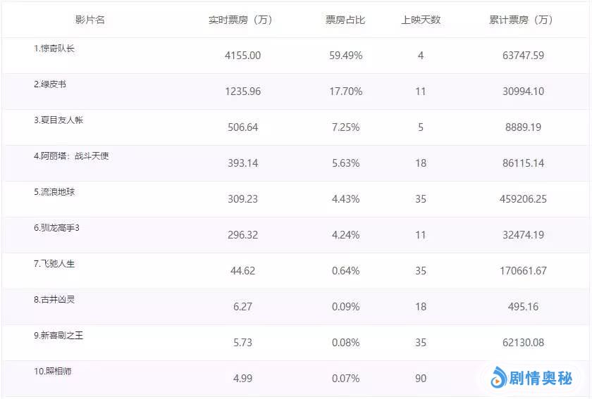 - 《惊奇队长》4天6亿,《绿皮书》票房破3亿!