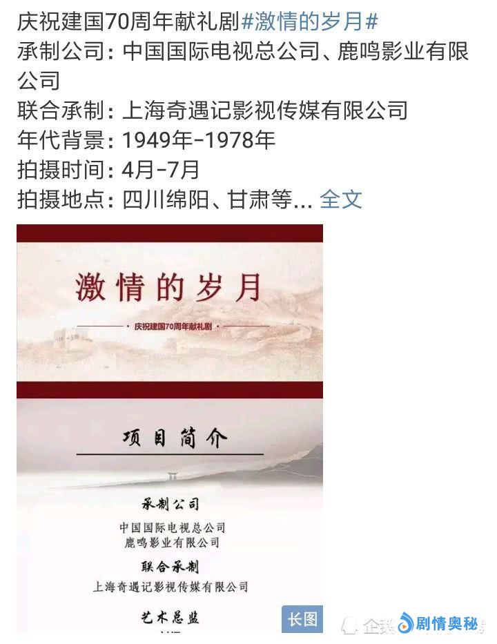 - 30集电视剧《激情的岁月》筹备开拍,实力派演员张译加盟出演