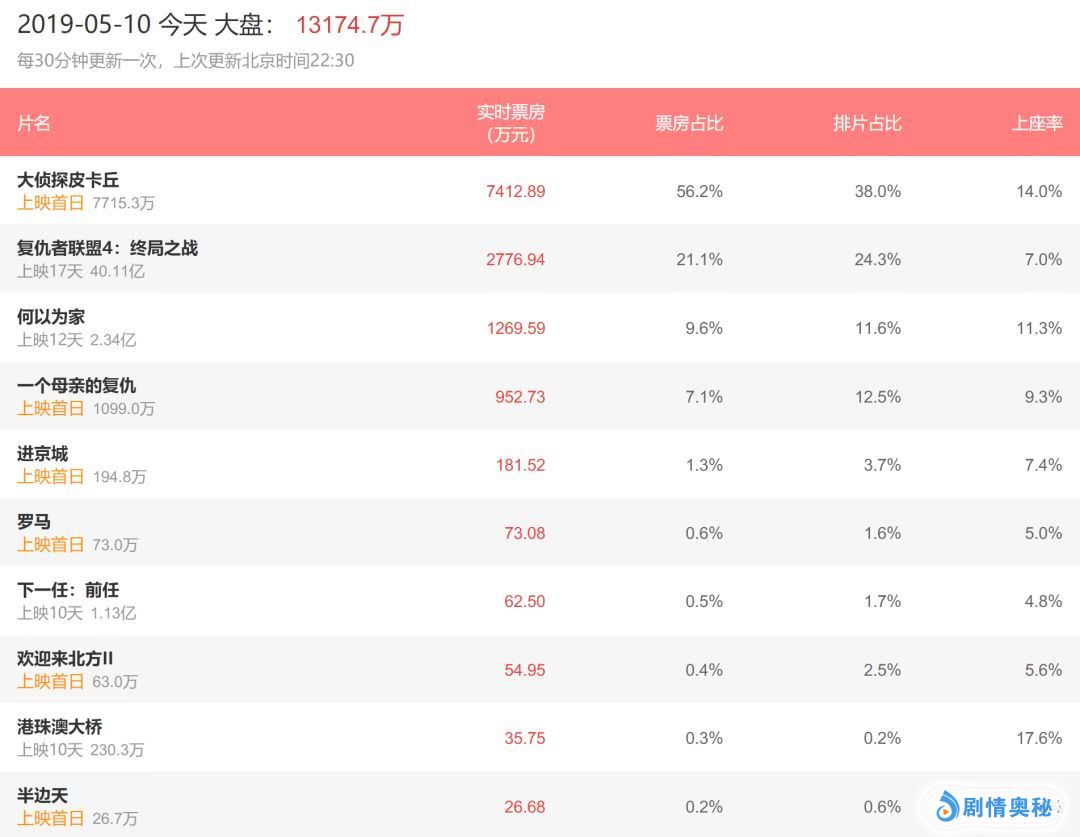 - 《大侦探皮卡丘》首映夺冠,《复联4》屈居第二,《进京城》爆冷