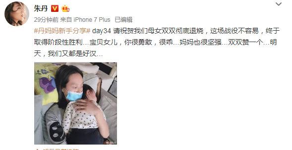- 朱丹晒照,自己生病发烧戴口罩照顾同样生病的2岁女儿,超憔悴!