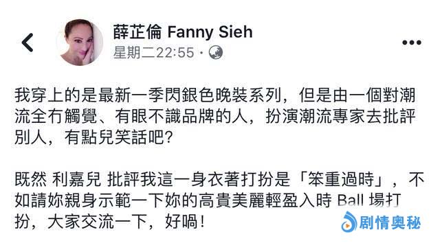 - 名媛薛芷伦不满着装被批笨重过时动肝火,直言曾夺五次杰出衣着奖
