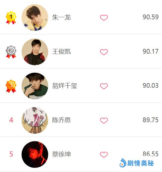 - 明星排名更新,美男子朱一龙一枝独秀,陈乔恩位列第四