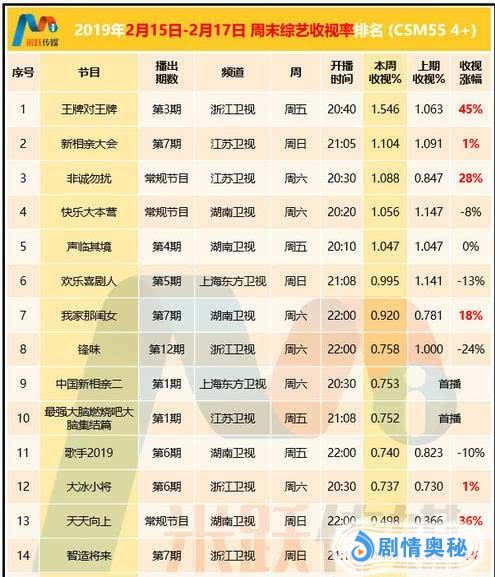 - 综艺节目收视率TOP10:相亲节目占半壁江山,《歌手》没入榜