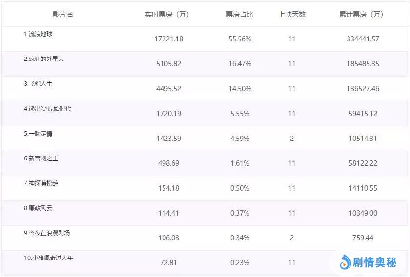 - 《流浪地球》票房突破33亿,距离星爷的《美人鱼》已经不远了!
