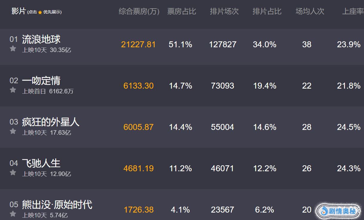 - 《流浪地球》突破30亿,豆瓣分呈下降趋势,王大陆情人节逆袭
