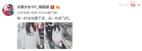 - 杨超越晒照,脚踩小脏鞋手拿菠萝现身机场,称:前一秒在地里干活