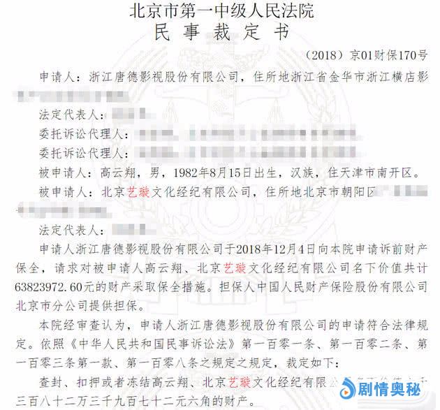 新金牌娱乐观察家知道,高云翔这段时间不太顺利,具体的事你们也都知道了。最新的消息是,高云翔与妻子董璇全资持股的北京艺璇文化经纪有限公司遭法院裁定冻结资产,据说总值6382.4万元人民币。