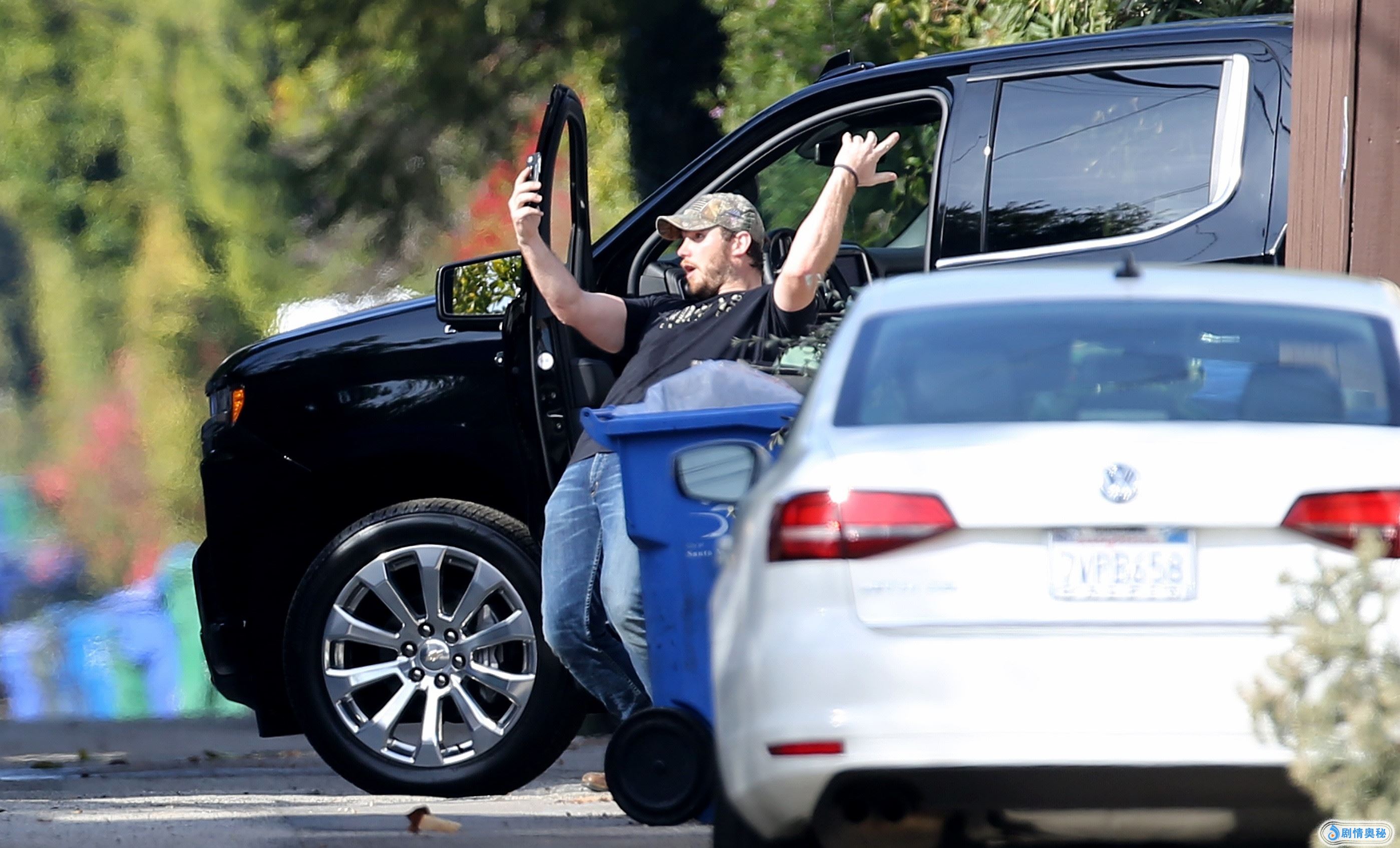 在媒体抓拍到的照片中,星爵应该是去接女友逛街,下车后的他拿着手机,看起来好像是在视频,做出各种搞怪的动作,真的是用尽了全身的力气。