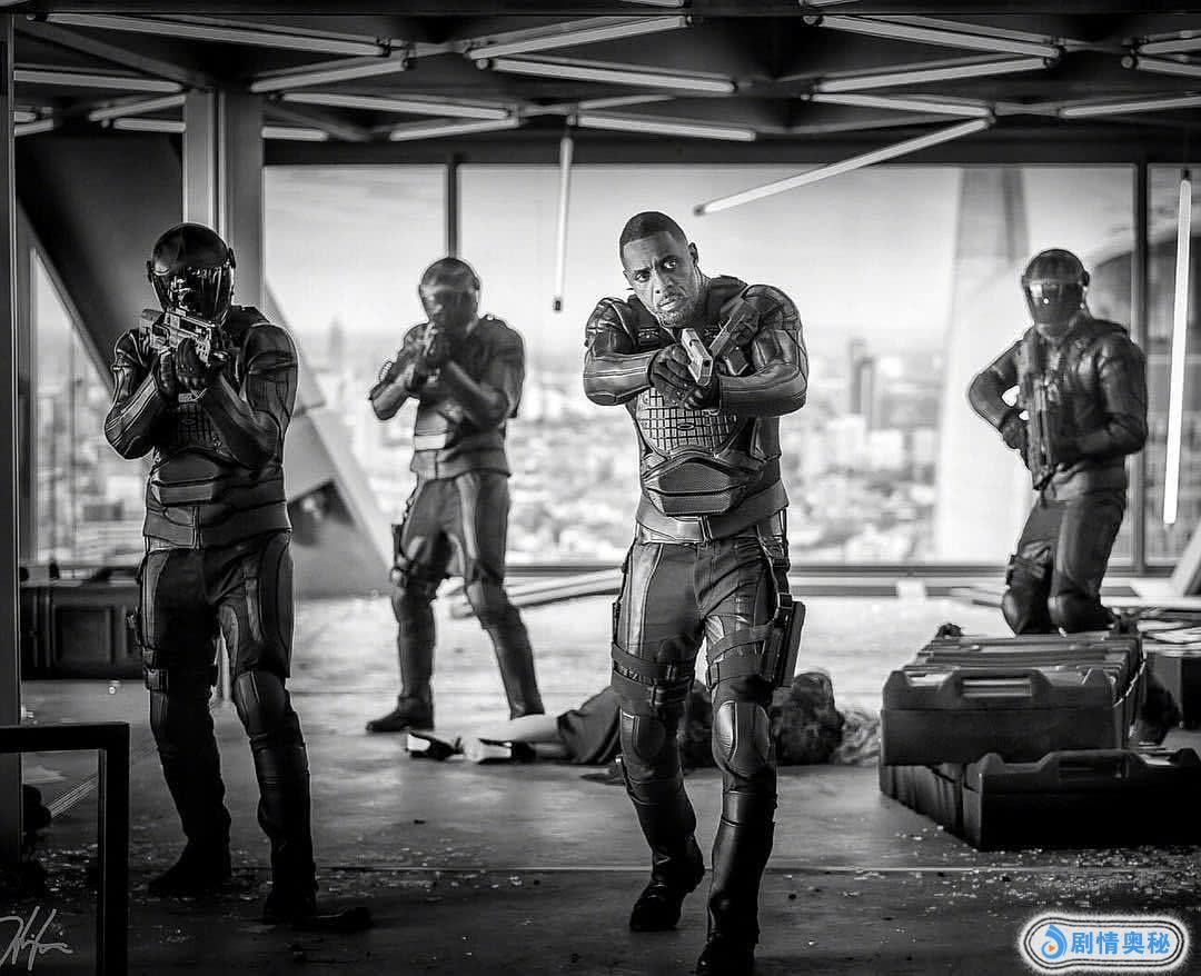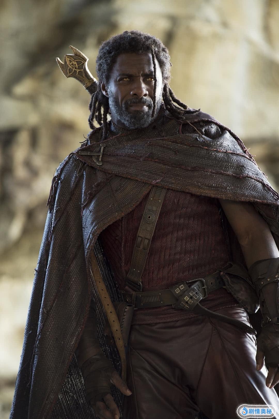 没错,站在强森与斯坦森身后的“光头”,正是本片中的大反派,由伊德里斯·艾尔巴饰演。大家熟悉他的另一个角色,应该就是《雷神》中的海姆达尔了。