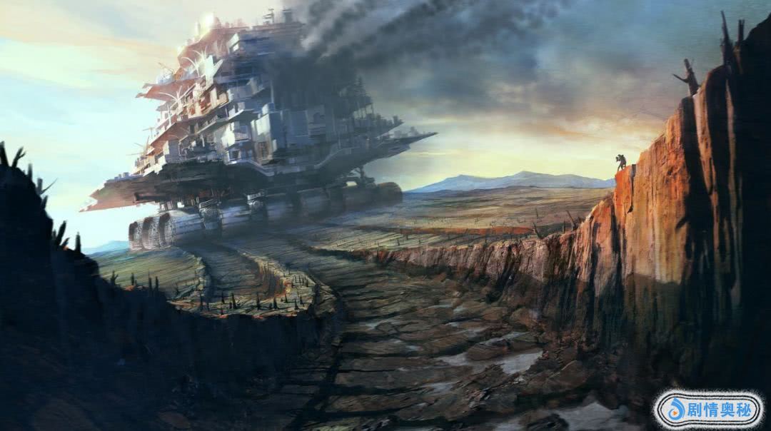 他们不再居住在地面上,而是寄居在一幢幢可以移动的城市里,城市底下有巨大的齿轮牵引,可以自由移动。