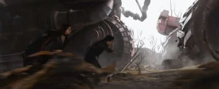 为了表现这一段的恢弘,视效团队在防御前面,大约制作了5万平方公里的人造风景,同时还在防御墙外,为“反牵引联盟”核心国山国制作了2万平方公里的人造风景。