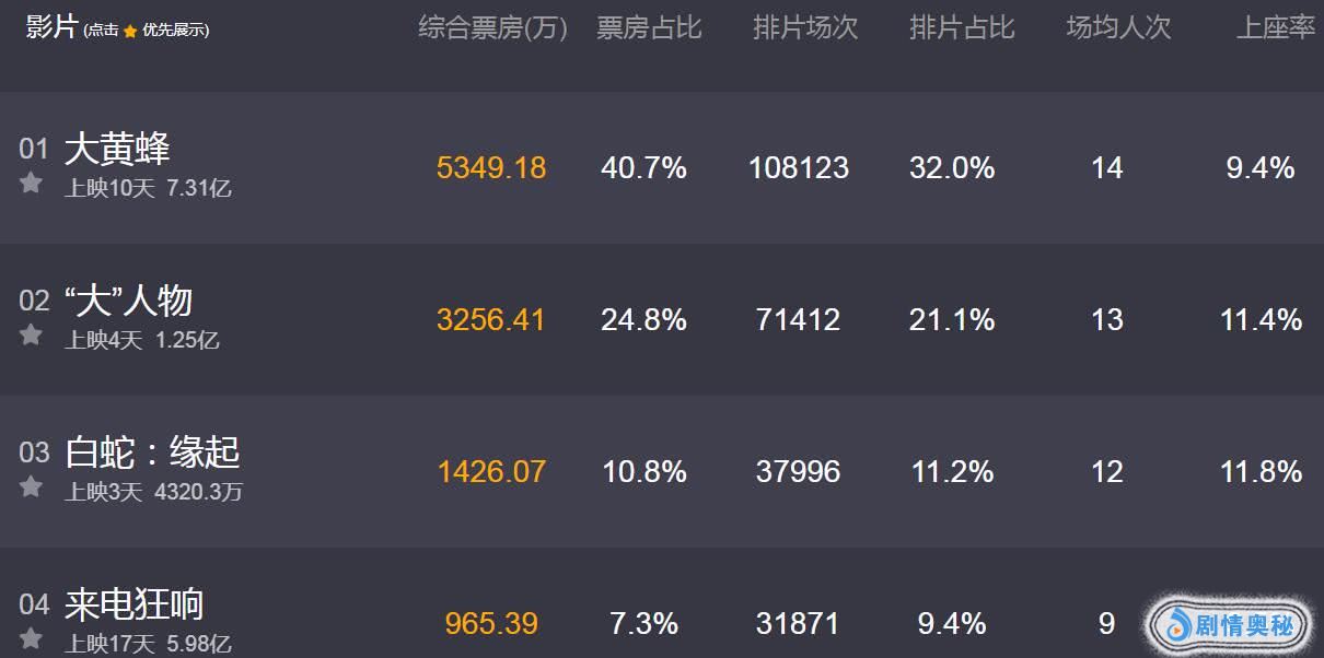 《大黄蜂》今天排映了10万场次,目前实时收5349万(截止20点15),上映10天累计7.3亿元。这个成绩大大低于片方预期,按现在这个走势要想追平《变形金刚5》15.5亿更是不可能了,最终预计也就10亿封顶。从上部系列电影票房15.5亿下跌到7.3亿(上映中),风靡亚洲的大IP跌下神坛了,派拉蒙没有了这个爆款,拿什么和迪士尼,环球影业,华纳等大公司竞争?