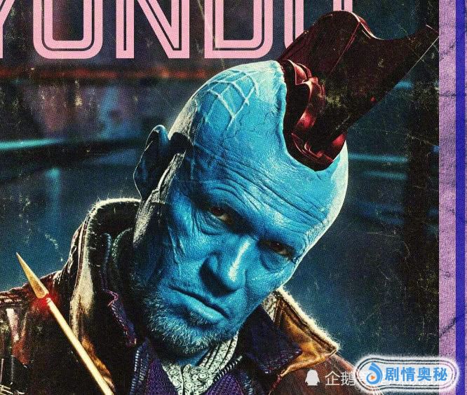 银河护卫队里的勇度,头上长了一个角,像犀牛一样。勇度的蓝色皮肤第一眼很扎眼睛,再配上这个回头率百分之两百的犀牛角,样子很显眼。在电影中,勇度可是吹吹口哨就能消灭百人的角色呢!