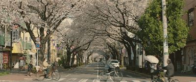 樱花树旁,有一间不起眼的小店,店名印在门口的旗子上,随风飘扬:铜锣之春。