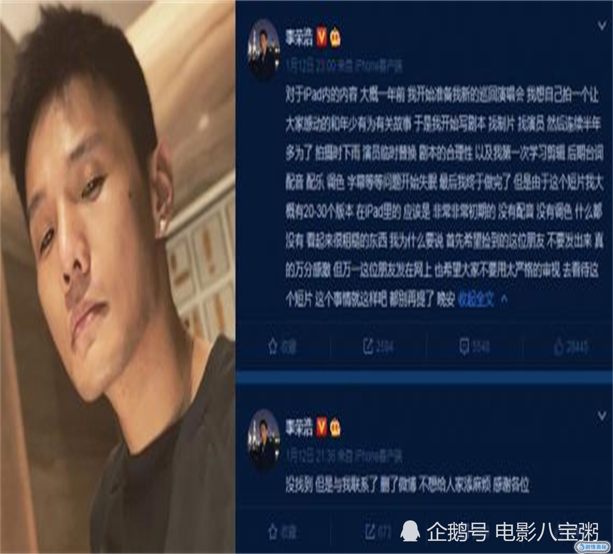 对于李荣浩如此在意平板电脑里面的资料,以至于告诫捡到的朋友不要讲内容曝光。其实李荣浩也是为此解释了一番,因为里面的资料是自己筹划拍摄《年少有为》短片的一些内容,涉及了剧本、台词、配音、配乐等内容。这些都让李荣浩花费了不少的精力,所以对此才看得比较重要。