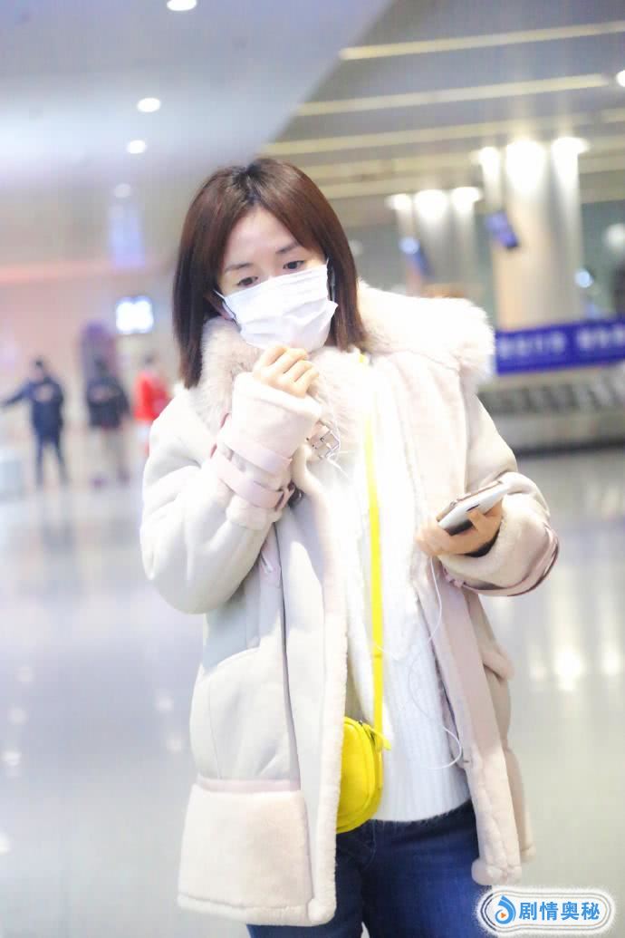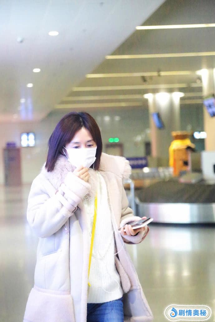 谢娜戴着一个大大的口罩,几乎遮挡住了半个脸蛋,双耳都插着耳机。谢娜左手拿着手机,右手捏住耳机线,似乎正在和人打电话。