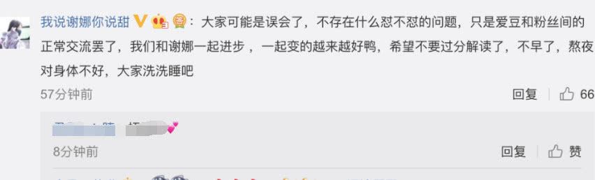 对于被粉丝怼这件事,谢娜超话另一个粉丝大咖说:大家可能误会了,不存在什么怼不怼的问题,只是爱豆和粉丝正常交流罢了。