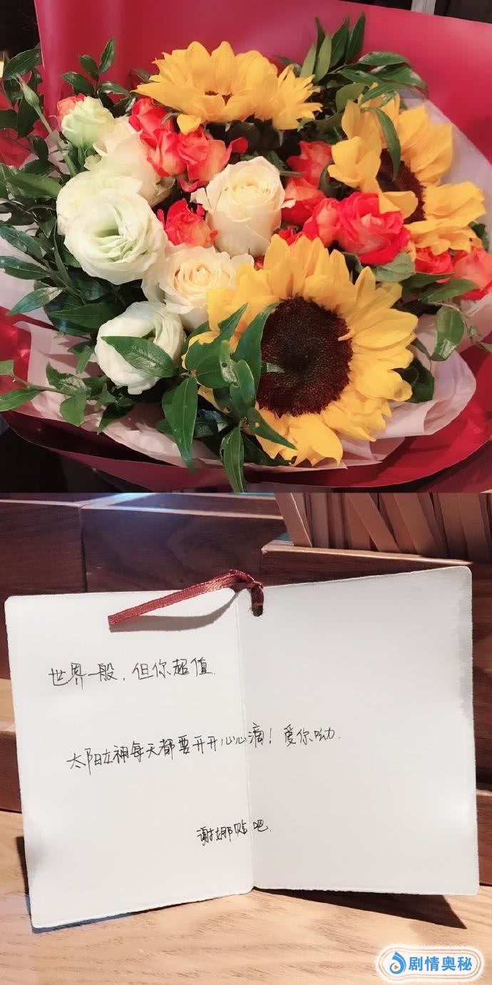 谢娜贴吧官博还晒出了一束鲜花,五彩斑斓,上面附带一个卡片,是写给谢娜的。卡片上写着这么一行字:世界一般,但你超值,太阳女神每天都要开开心心,爱你呦!